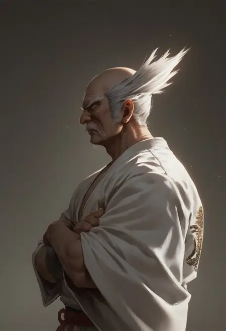 이것은 푸니용 히하치 모델입니다. 오래된 버전이나 젊은 버전을 얻을 수 있습니다. 더 나이가 많은 버전은 흰색 머리카락을 추가하고, 젊은 버전은 검은색 머리카락을 추가하세요. 또한 검은 도의나 보라색 코트를 얻을 수 있습니다.