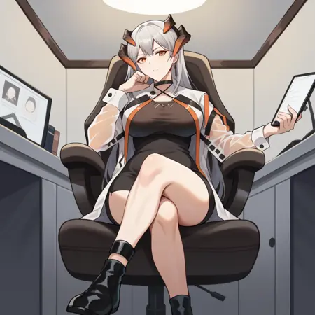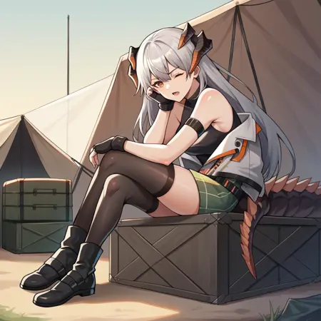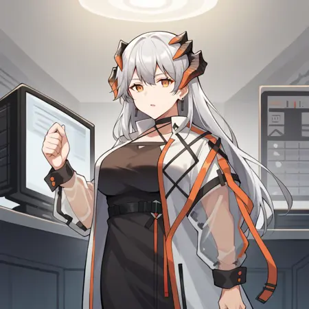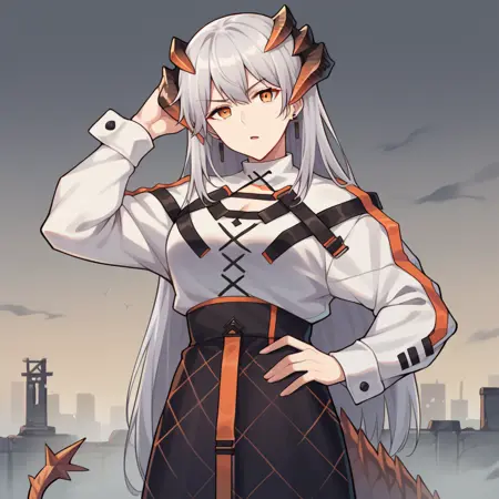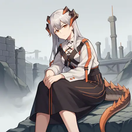 Saria_Ark, 龙尾, 龙角, 白发, 橙色眼睛, saria_(arknights)