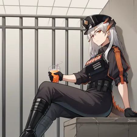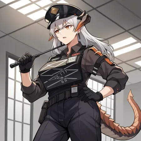Sar_Warden, 警察制服, 战术服装, 黑色衬衫, 中长袖, 黑色长裤, 腰带, 黑色手套, 有领衬衫, 黑色头饰, 耳钉, 警帽,