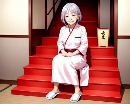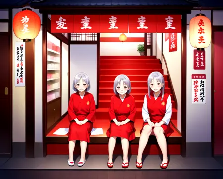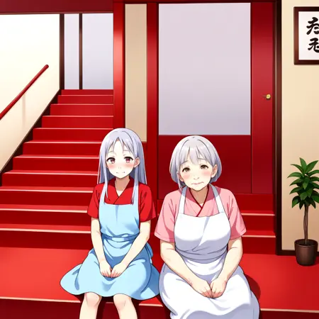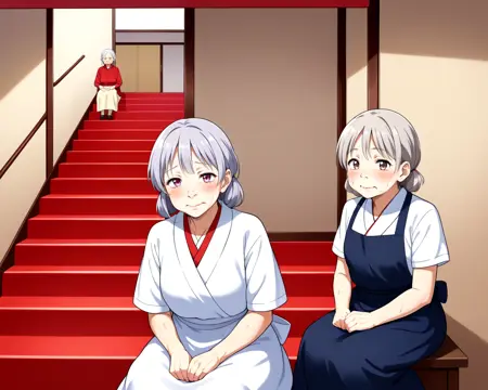 女将は、椅子に座ったり、玄関の階段に座ったりして、注文を即座に受け付ける態勢を取っている。一方、助女将は、座布団の上にあぐらをかいたり、正座をしたりして、女将の行動を観察し学びながら、接客やその他の雑務を担当する。