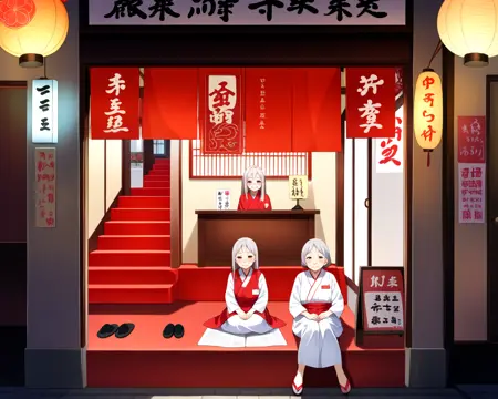 老板娘常坐在椅子上或入口的台阶上,随时准备接受客人的点单。而助手老板娘则通常盘腿坐在垫子上,或以传统的正坐姿势,一边观察并学习老板娘的一举一动,一边负责上菜等各类杂务。