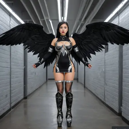 다크 엔젤 SDXL LoRA는 캐릭터 복장에 변화를 주고 검은 날개를 추가합니다.