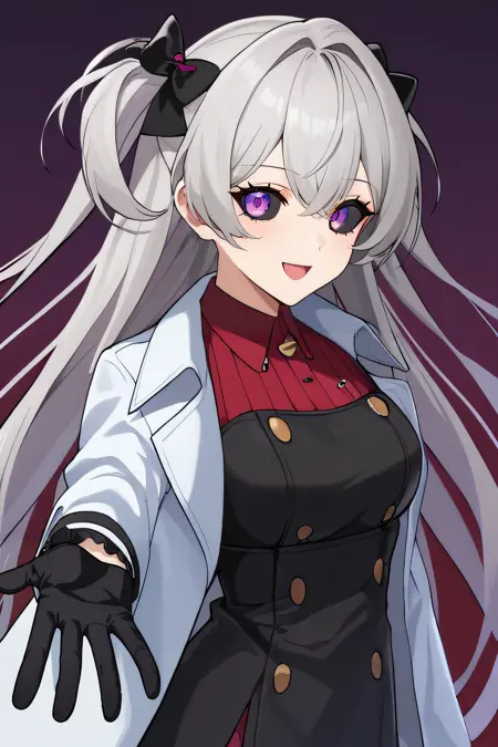 | トレーニングワード | eicy, very long hair, grey hair, purple eye, eyepatch, hair bow, two side upコピーしました! black gloves, white dress, eyepatch, black jacket, hood up, red shirt, two black belt, red pantyhose, black skirt, frilled skirt, short skirt, high heel black boots, thigh strapコピーしました! black gloves, collared shirt, red shirt, black dress, open coat, white coat, coat on shouldersコピーしました! side ponytail, braided ponytail, collarbone, black bikini top, eyepatch, black scrunchie, bare shoulders, bare arms, cross necklace, black choker, frilled shortコピーしました! |
