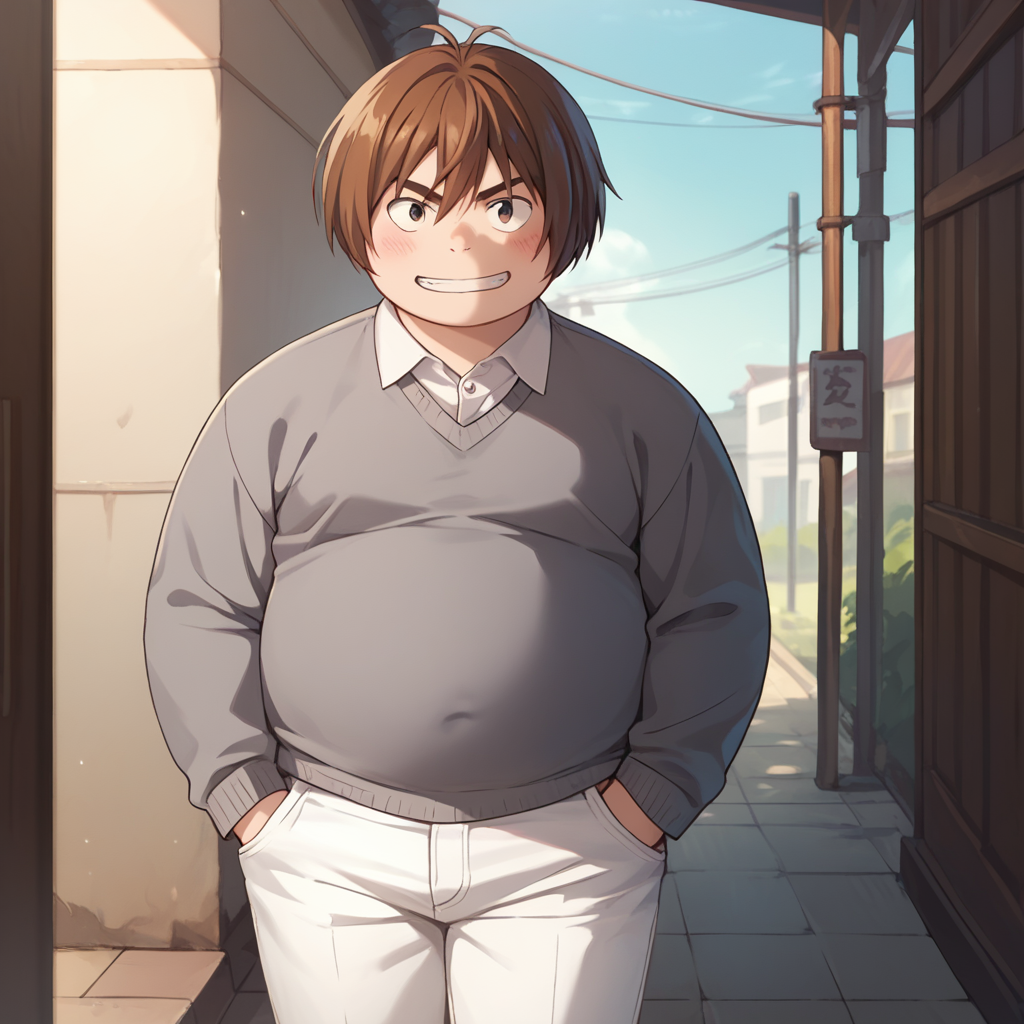 이 캐릭터는 애니메이션 내에서 여러 옷을 입고 나오기 때문에 특정한 외모는 없습니다만, 일반적인 모습은 다음과 같습니다: