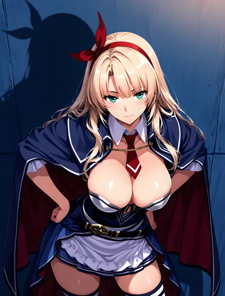 激活标签为 "alicia(qbg),",外观标签为 "金发,长发,大胸部,绿眼睛,",服装标签为 "条纹过膝袜,长发,乳沟,红色发带,红色领结,蓝色斗篷,",也可使用 "蓝眼睛" 色调。还可添加 "动漫上色" 标签。