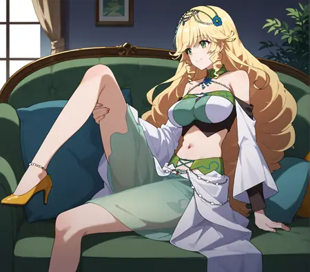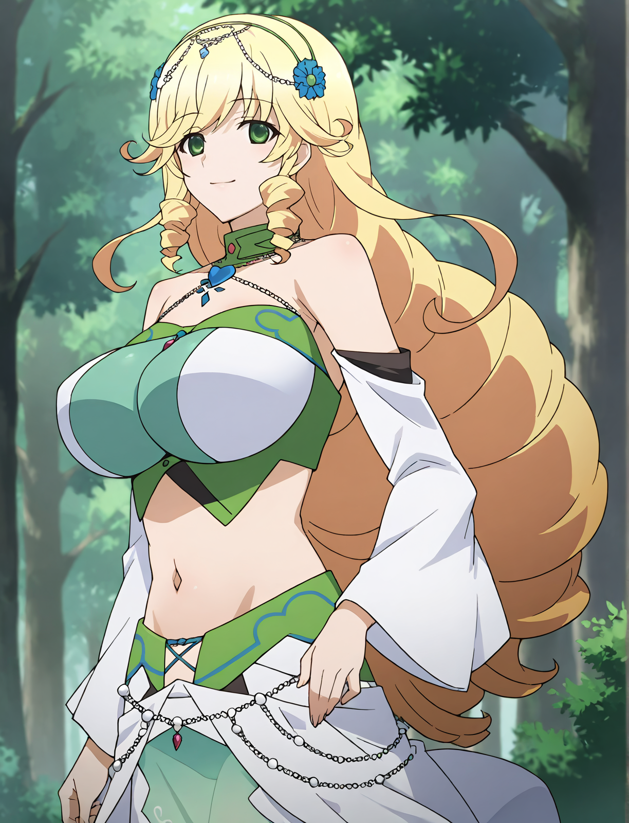Sofya_O, 1girl, solo, blonde hair, green eyes, very long drill hair,large breasts