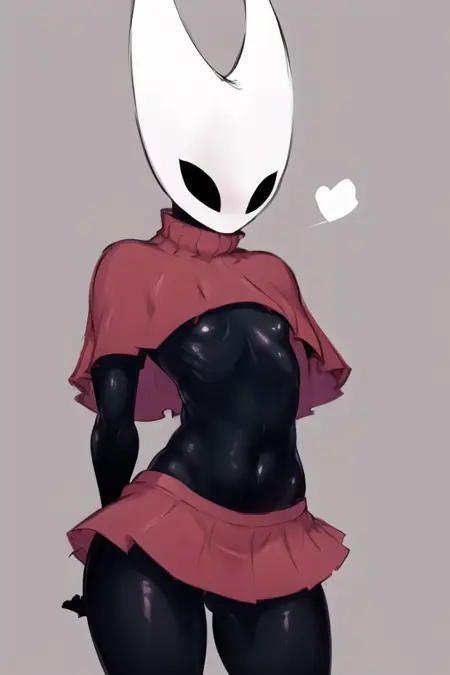 Clothes: "turtleneck" and "red capelet" or "red cloak"