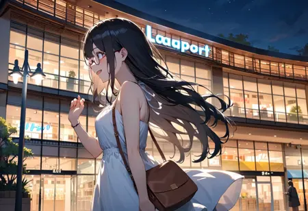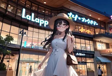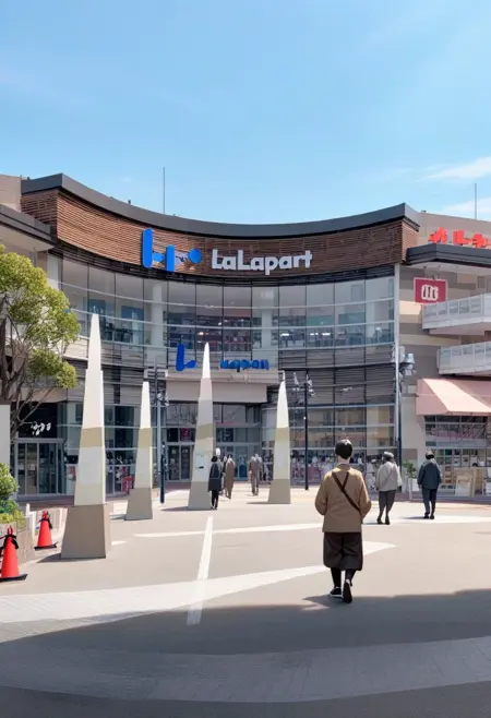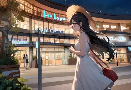 これは西宮市にある某ショッピングセンターの外観(の一部)っぽい感じの風景を描いてくれるかもしれないLoRAです。