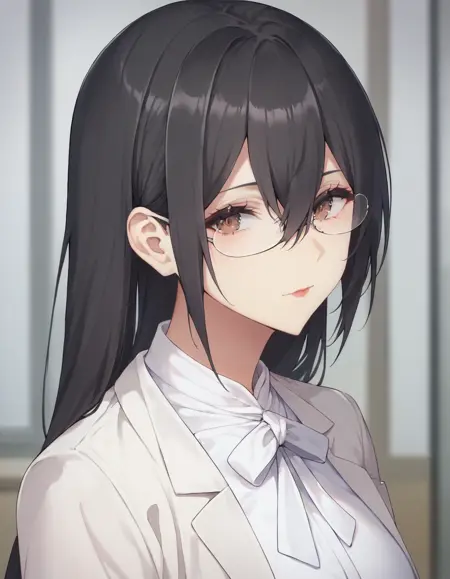 mayuri hanyu, long hair, black hair, hair between eyes, brown eyes, semi-rimless eyewear