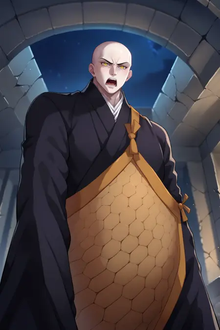 외모: 1남자, admss, 성숙한 남성, 흰 피부, 대머리, 노랑 눈, 키가 크다
