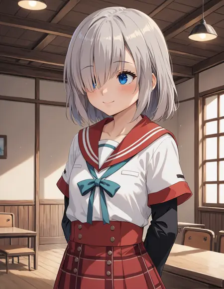 公共服装: mgrcisuzuren, renpbc, 蓝色发结, (黑色针织开衫:0.5), 白色清教徒领, 花饰别针, 白色格子裙