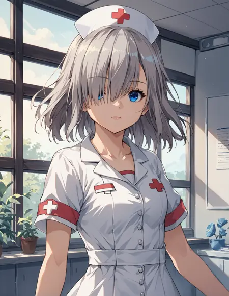 外貌: 灰色头发, 中长发, 蓝色眼睛, 一只眼睛被遮住