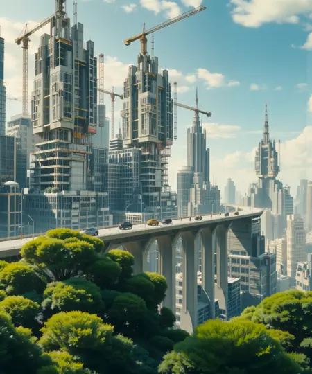 スケール表現: 巨大な構造物や都市の明確なスケール感