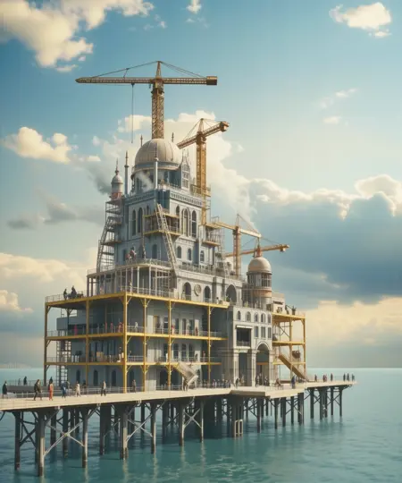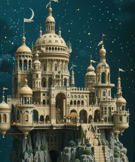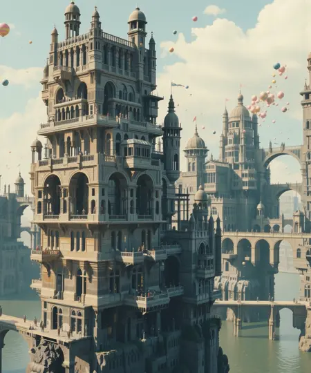 建築的ファンタジー: 高度に詳細で想像力豊かな建築シーン