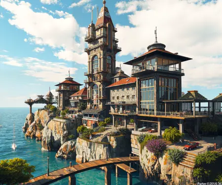 Architectural Fantasy: Highly detailed, imaginative architectural scenes