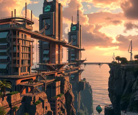 Mixed Architectural Styles: Blending of ancient/gothic with futuristic elements