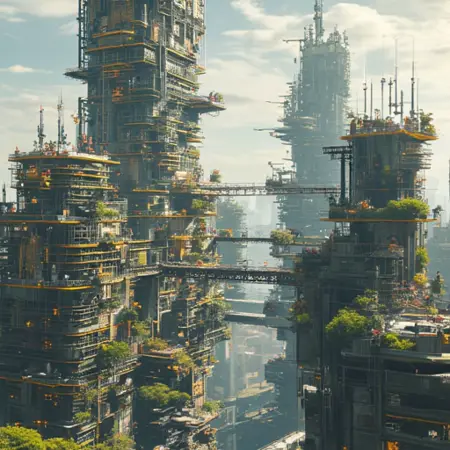 Technological Integration: Futuristic and industrial elements within scenes