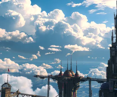 Cloud Layers: Cities or structures floating above or amidst clouds