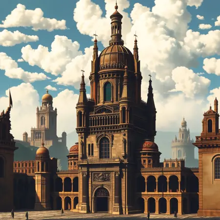 Architectural Fantasy: Highly detailed, imaginative architectural scenes
