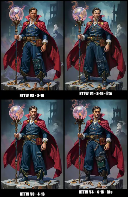 - "nttw style" appears in every prompt and appears to be a universal modifier or base style for the model.