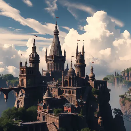 skymonastary - Ethereal floating cities with Gothic elements above clouds