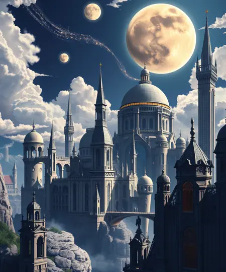 kamipalace - 별이 빛나는 밤하늘을 배경으로 한 판타지 성채