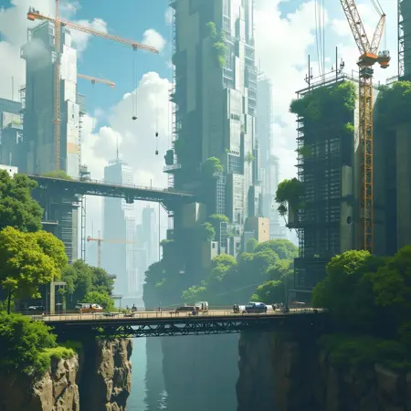 漂浮/悬空结构:多数风格都包含悬浮于地面或水面之上的建筑、城市或平台