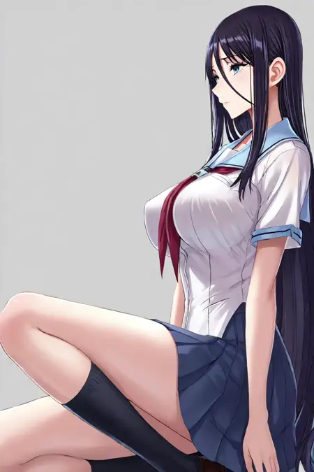 服装2:铃原美彩,长发,黑发,极长发,头发遮住眼睛,裙子,校服,百褶裙,水手服,袜子,挺拔乳房