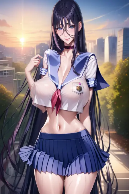 服装2:铃原美彩,长发,黑发,极长发,头发遮住眼睛,裙子,校服,百褶裙,水手服,袜子,挺拔乳房