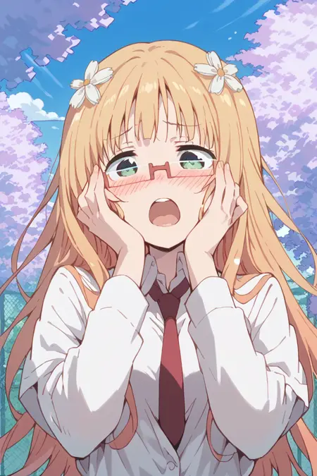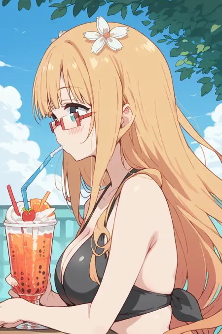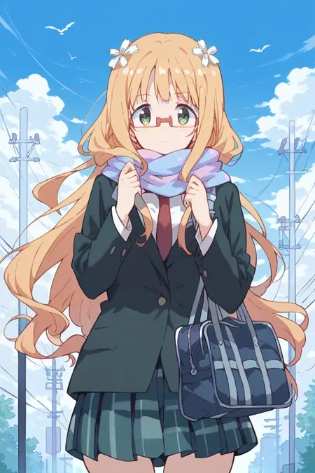 Use Mitsuki, 1girl, long hair, glasses and hair ornament.
