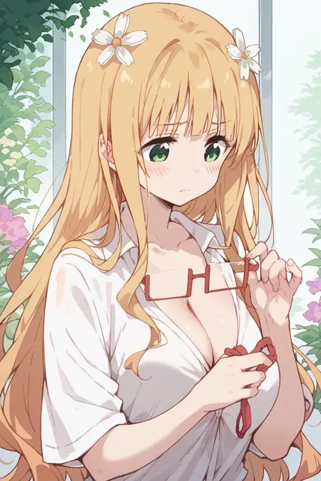 미츠키, 1girl, 긴 머리, 안경, 머리 장식을 사용하세요.