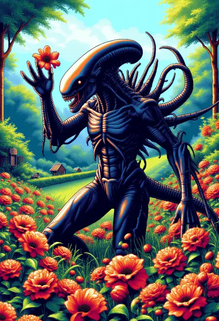 Prompting: "The image is a vibrant, pc98style pixelated digital artwork of (SUBJECT)"