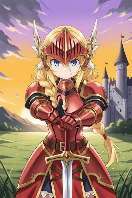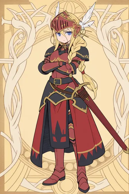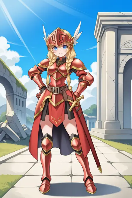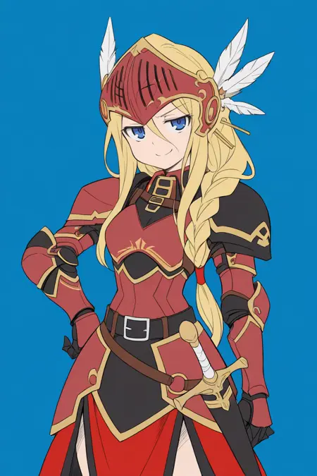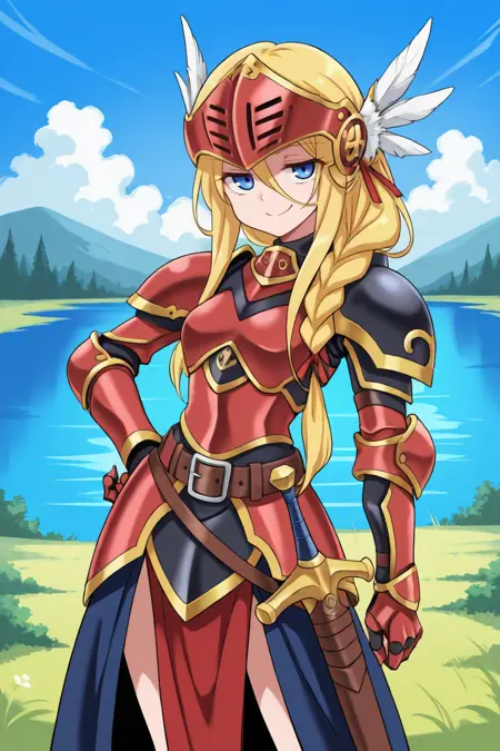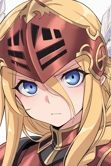 • 루시아나 룬 아트왈츠: Lucdef, 1girl, 금발, 긴 머리, 땋은 머리, 쌍둥이 땋은 머리, 낮은 쌍둥이 땋은 머리, 파란 눈, 발키리, 시저(갑옷), 날개 달린 헬멧, 갑옷 드레스, 갑옷, 장갑, 부츠,