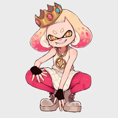 推荐标签: + pupils, 1girl, crown, dress, fingerless gloves, gold eyes, mole, mole under mouth, multicolored hair, shoulder length cream tentacles with pink tips hair, tentacle hair,