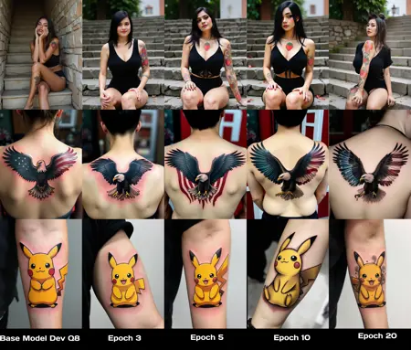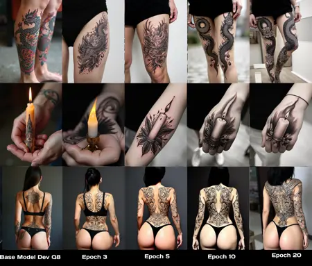 这个LoRA有助于生成纹身图案,但目前仍处于测试阶段,用于探索如何训练Flux模型。