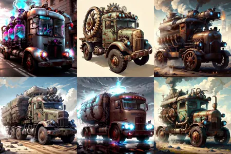 업데이트: v0.1은 디젤펑크 스타일의 이미지를 다소 무미건조하게 생성했습니다. 따라서 파라미터를 약간 조정해보았고, 이제 결과에 만족합니다.