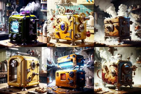 更新: v0.1ではディーゼルパンクの画像がやや無難なものになってしまいました。そこでパラメータをちょっと弄ってみたところ、今度は満足のいく結果が得られました。