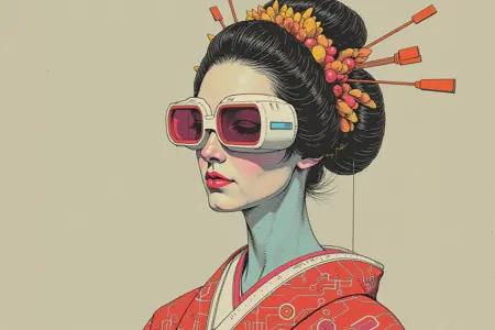 This style combines intricate line work with a soft, retro-inspired color palette, creating illustrations that feel both nostalgic and slightly surreal. The art features hand-drawn qualities blended with digital techniques, often depicting characters or objects with a unique fusion of organic and mechanical elements. Textures reminiscent of old prints or worn surfaces add depth, while limited color schemes - typically pastels and muted tones - evoke a dreamlike, retrofuturistic atmosphere.