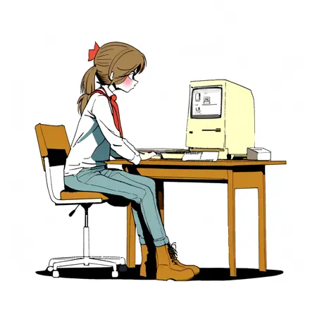 오래된 매킨토시 컴퓨터가 배경인 이미지.