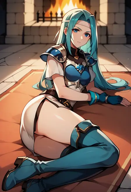 一般的なプロンプト: FioFE、アクアカラーの髪、ロングヘア、青い目
