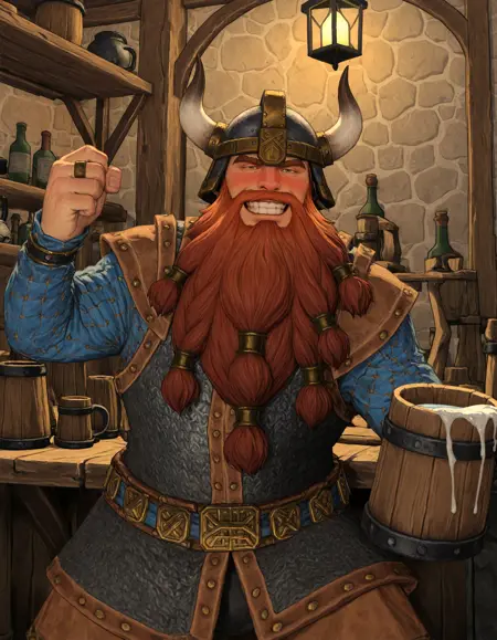 DwarfWarrior, helmet, armor, holding shield, holding axe,