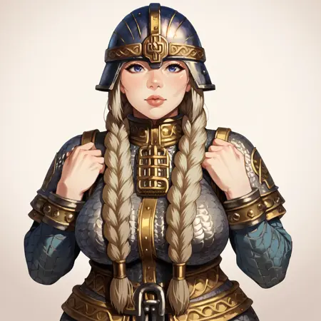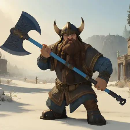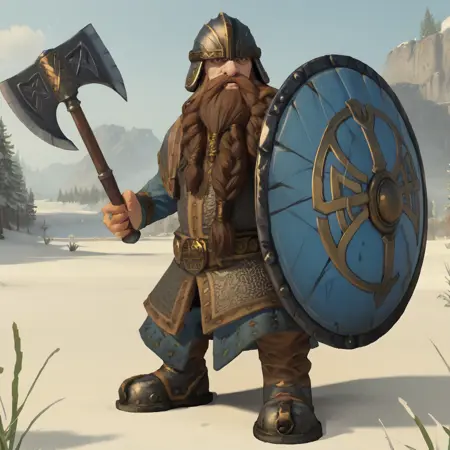 DwarfWarrior, helmet, armor, holding shield, holding axe,