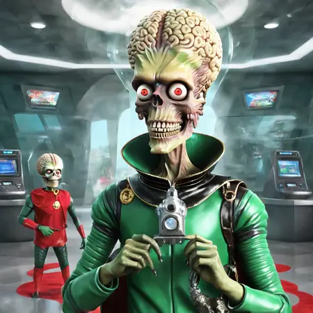 委託用の小さな実験、『マーズアタック』映画。このSDXL LoRAはまだ作業中(WIP)ですが、皆さんのご意見を聞きたくて共有したいと思います!私の作品が気に入り、サポートしていただきたい場合は、Buzzでの寄付またはPayPal https://www.paypal.com/donate/?hosted_button_id=L87JAGTHDNBRA でご支援いただけます。