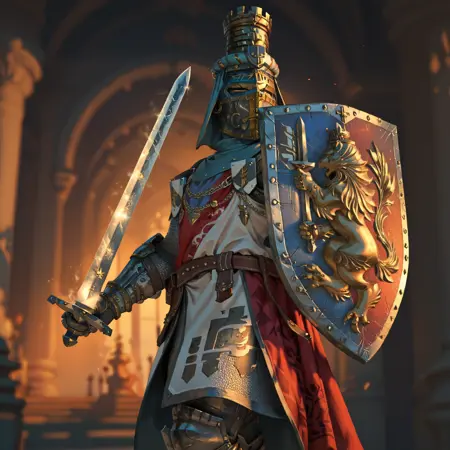 Grailknight, knight, full helmet, holding shield, holding sword, sword and shield,