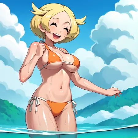 TAGS: bianca \(pokemon\),blonde hair, green eyes, short hair,
