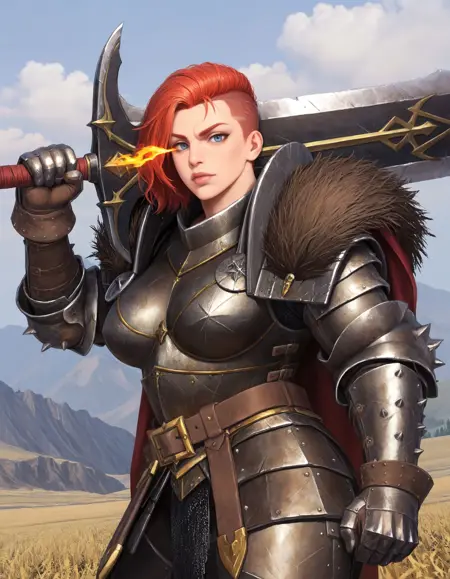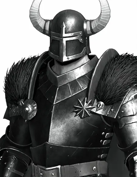 ChaosWarriorUndivided, full helmet, horned helmet, holding shield, holding axe,