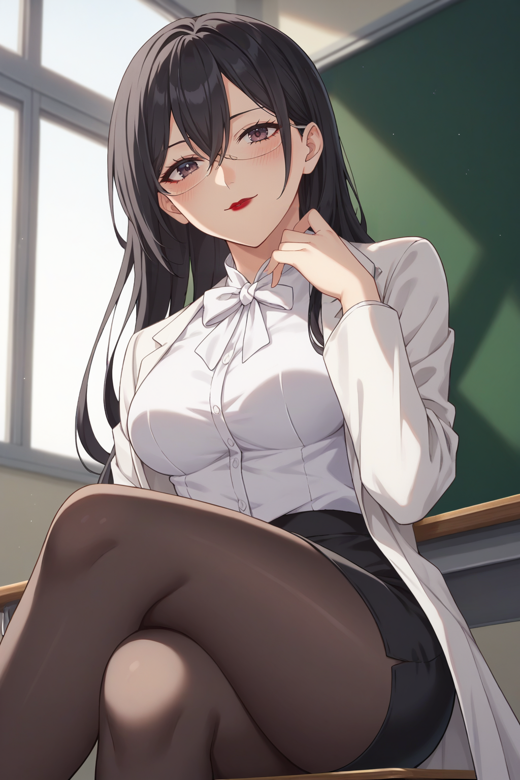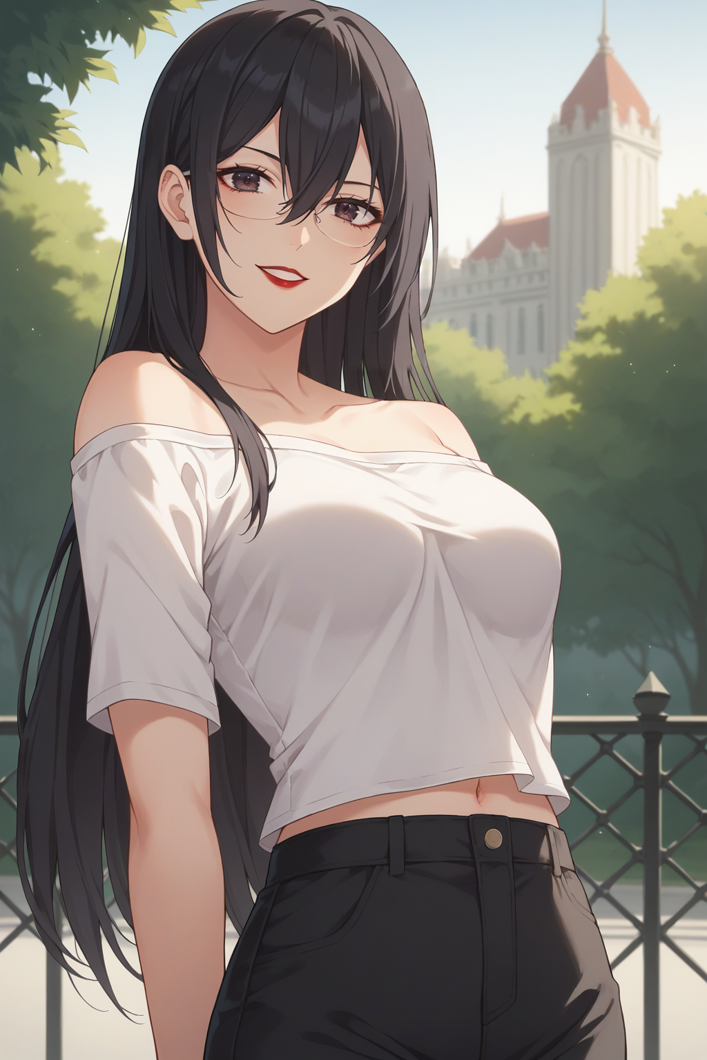 트리거: KJOmayuri, 검은 머리, 어두운 눈, 긴 머리, 눈 사이의 머리, 안경, 붉은 입술