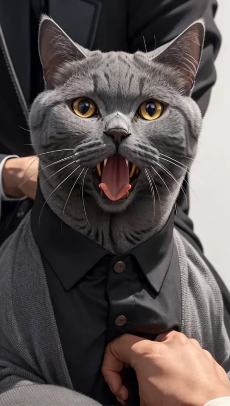 Actions: Open Mouth, Angry Face, Fangs, Holding Cat