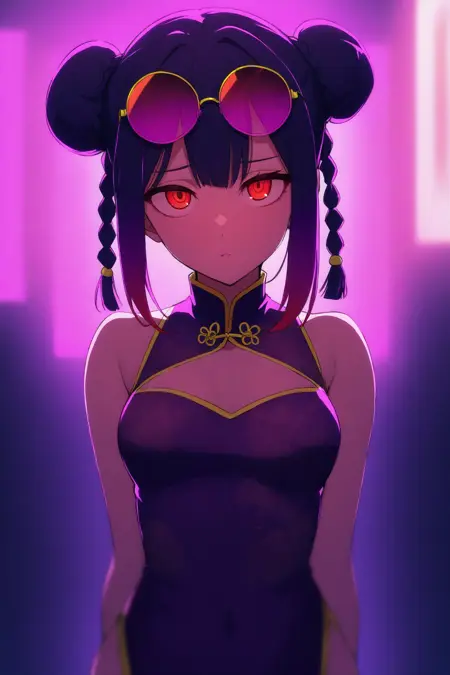 주요 특징은 다음과 같습니다: 네온 조명에 비추어진 주체의 색상 효과 강화, 배경 네온 조명의 강도 증가, 주체 주변의 네온 분위기 더 뚜렷하게 표현.