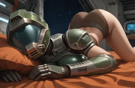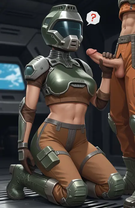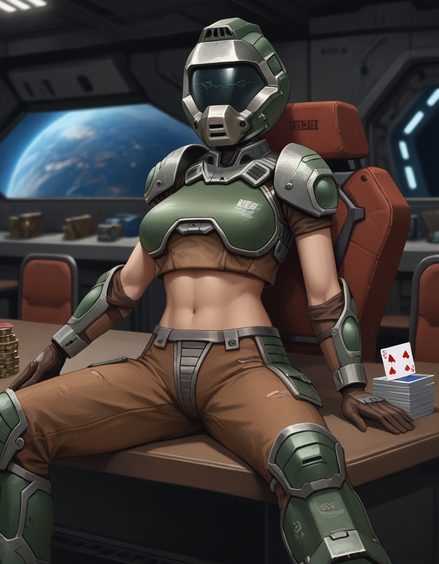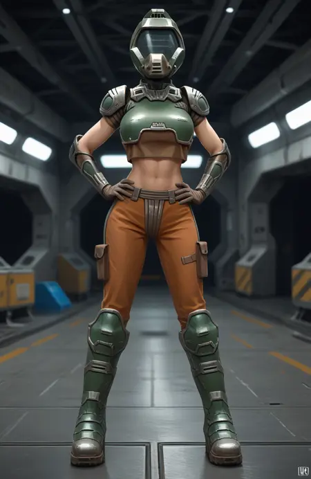 这是来自《雷神之锤3》的Crash,也就是女性版多姆战士。由于很难找到优质的图片素材,因此每一代生成的她的服装都会有较大差异。